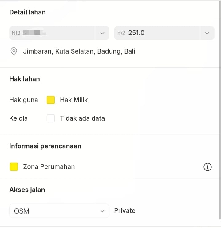 Luas tanah 251 m² (2,51 are)