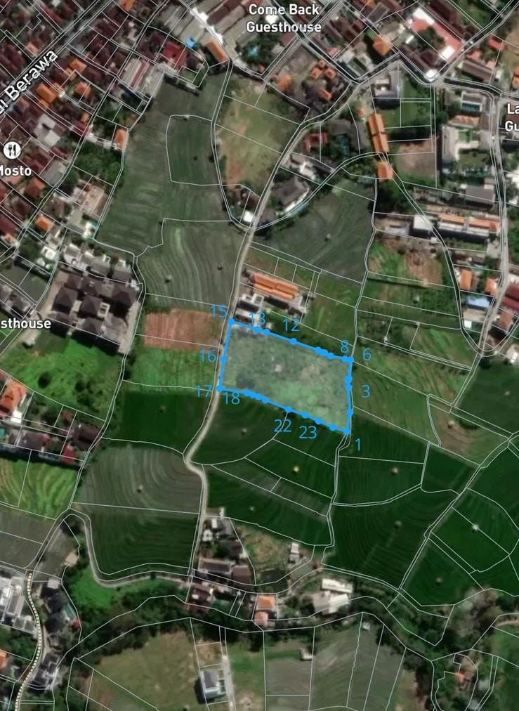 Dijual Murah Tanah View Sawah di Jl. Pantai Berawa