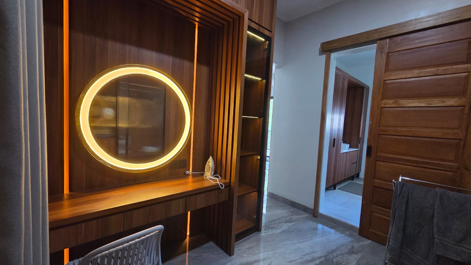 Mesin cuci, bed king koil serta size king 1, set wodrop, set meja rias, set lemari bathroom, AC Daikin 2pk, Wifi, tempat cctv di balkon