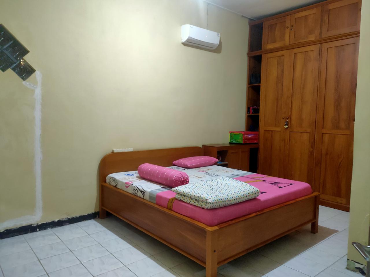 Luas tanah 200 m2, 3 kamar + 2 kamar mandi 2 unit gudang di halaman depan. Dapat furnish yg terpasang seperti AC. Lingkungan perumahan.