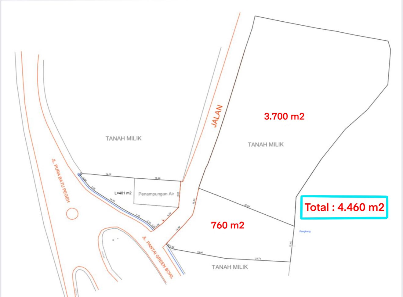 Dijual Tanah Luas di Jalan Pantai Green Bowl