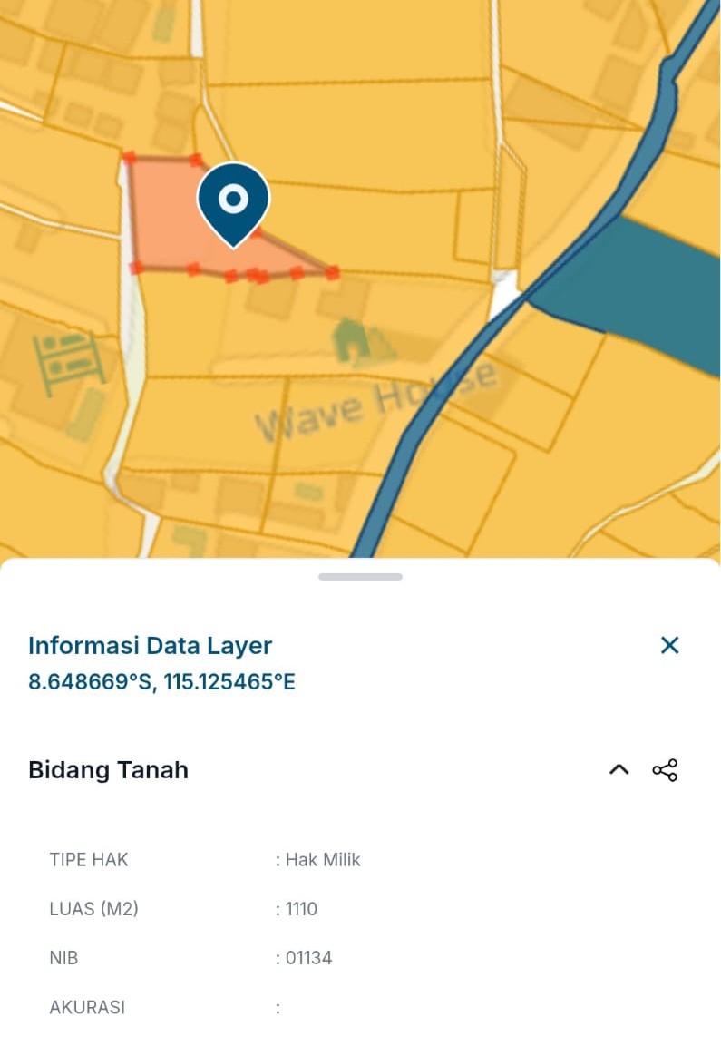 Dijual Tanah Luas di Jalan Tukad Pingai Lokasi: Jl Tukad Pingai, Pererenan, Mengwi, Badung, Bali