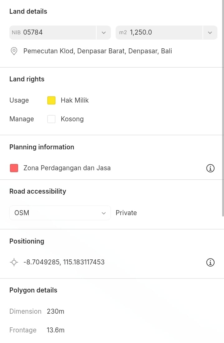 Luas tanah 1250 m2/12.5 are,