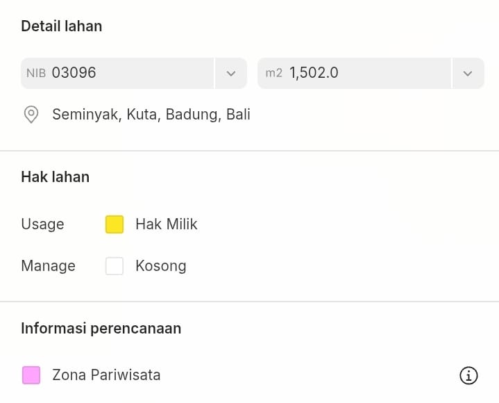 DIJUAL TANAH PREMIUM DEKAT SEMINYAK BALI MW - Seminyak
