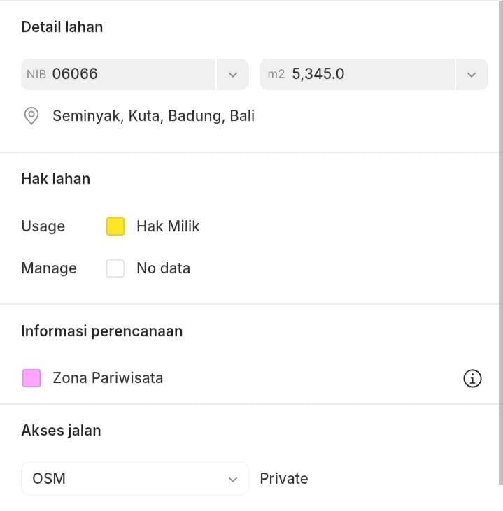 Dijual Tanah Strategis dengan return investasi tinggi di Seminyak
